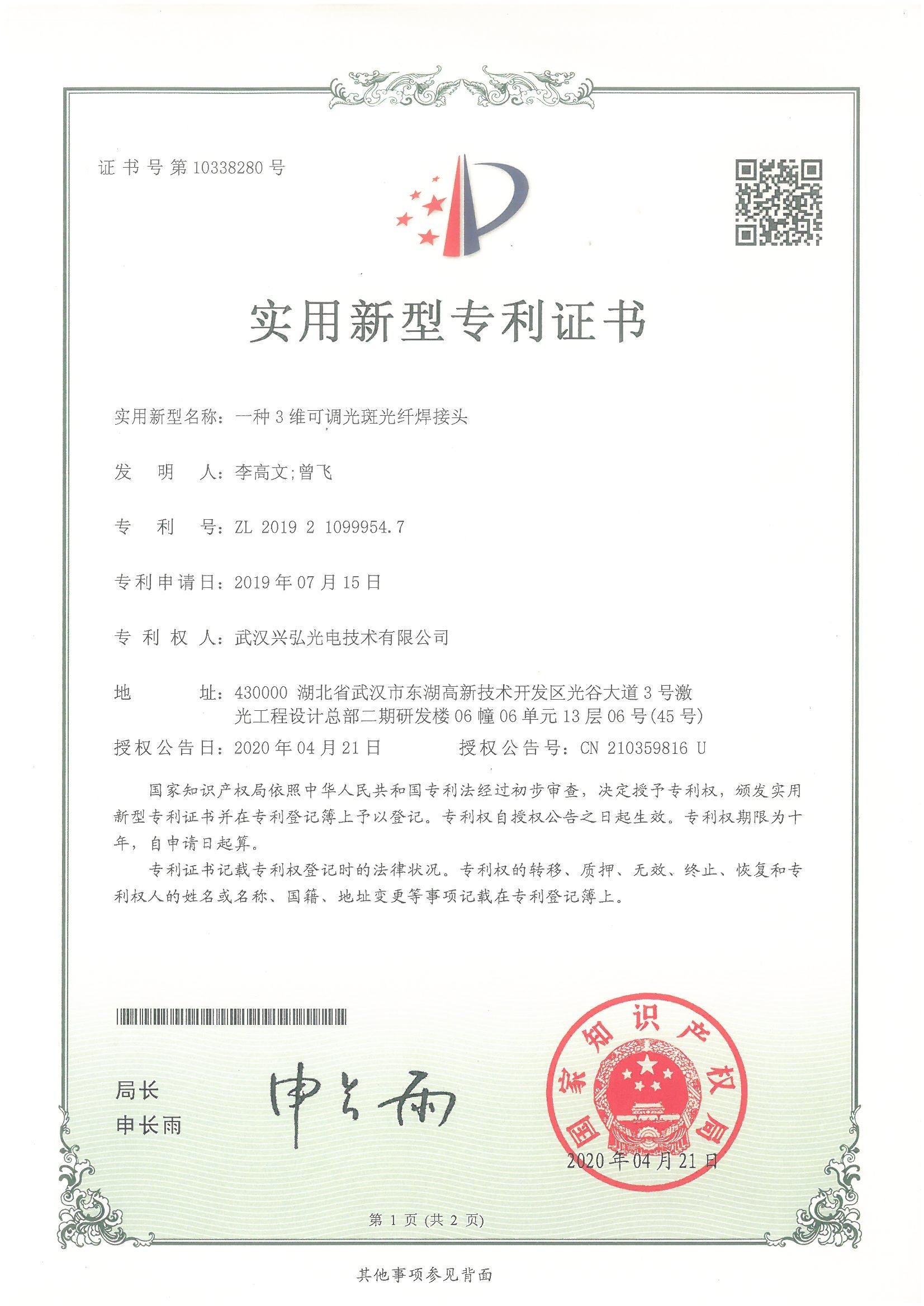 在研发团队长期的技术攻坚下,目前永兴集团光电已获得国家授权专利24项,授权发明专利1项,在审发明专利1项,申请中专利1项。专利囊括了激光焊接技术、焊接头监测软件、智能化控制软件、保护式控制系统、控制器软件、送丝系统、外观设计等各方面,运用在产品的生产过程中,可以极大的改善激光生产中遇到的场景化难题。